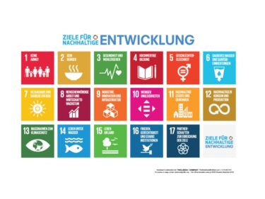 Deshalb orientieren wir uns an den 17 Zielen für nachhaltige Entwicklung der Vereinten Nationen (Sustainable Development Goals – SDGs). Diese wurden im Rahmen der Agenda 2030 von allen 193 UN-Mitgliedsstaaten beschlossen und bilden einen globalen Rahmen für nachhaltiges Handeln in den Bereichen Umwelt, Gesellschaft und Wirtschaft. Sie verbinden zentrale Zukunftsthemen wie Gesundheit, Bildung, Klimaschutz, faire Arbeitsbedingungen und verantwortungsvollen Konsum zu einem gemeinsamen Zielbild.